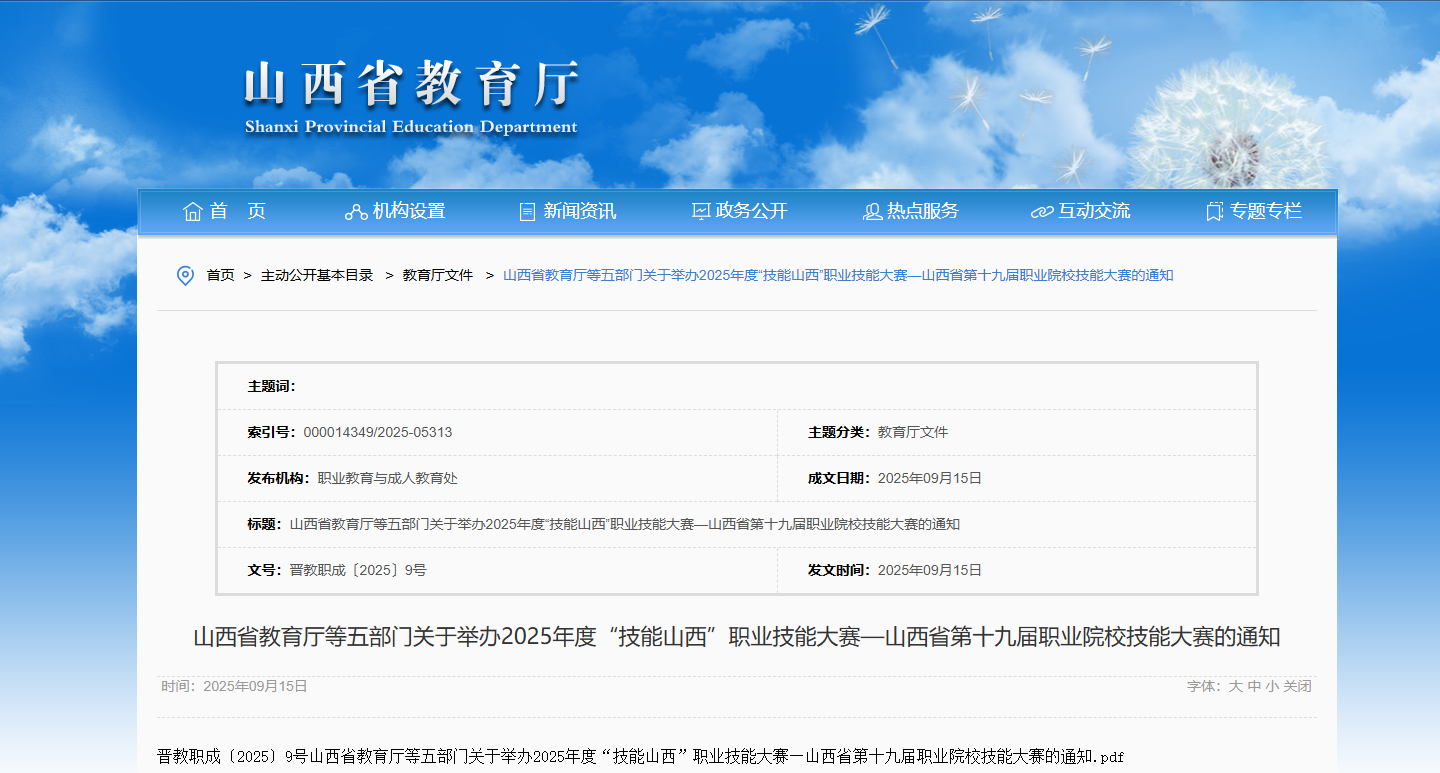 附件:晉教職成〔2025〕9號(hào)山西省教育廳等五部門關(guān)于舉辦2025年度“技能山西”職業(yè)技能大賽—山西省第十九屆職業(yè)院校技能大賽的通知