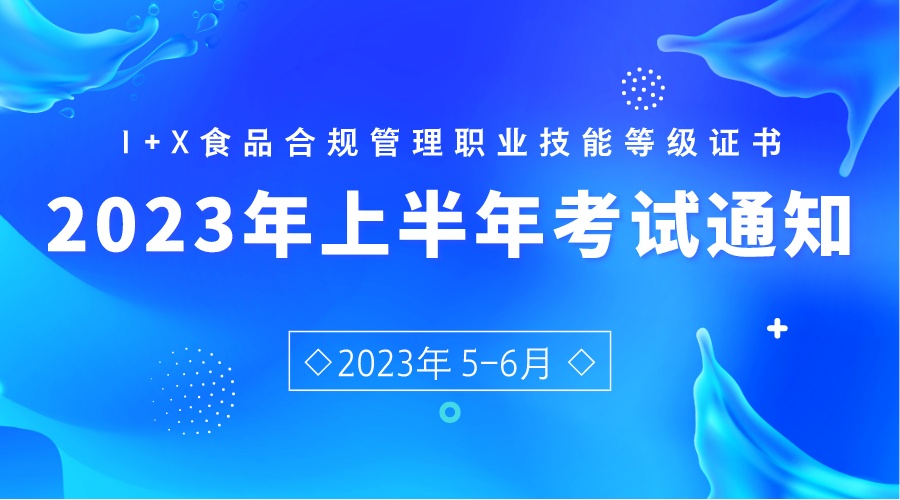 關(guān)于1+X食品合規(guī)管理職業(yè)技能等級證書2023年上半年考試安排的通知