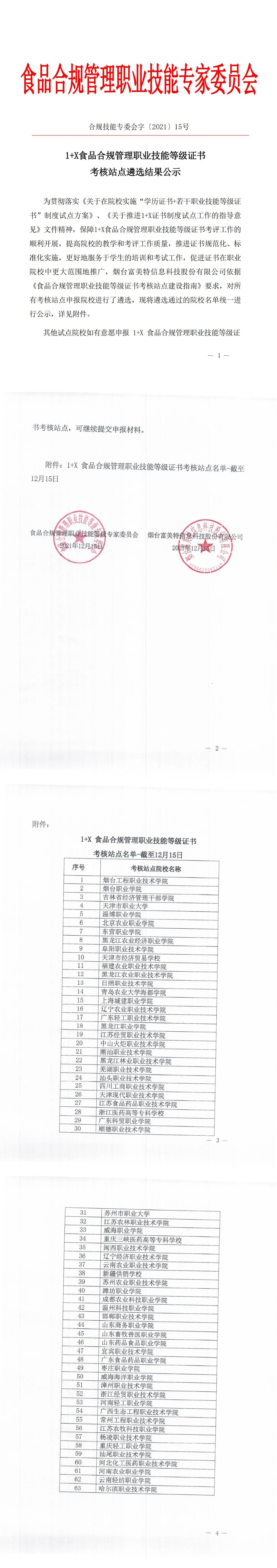 1+X食品合規(guī)管理職業(yè)技能等級證書考核站點(diǎn)遴選結(jié)果公示-截至12月15日