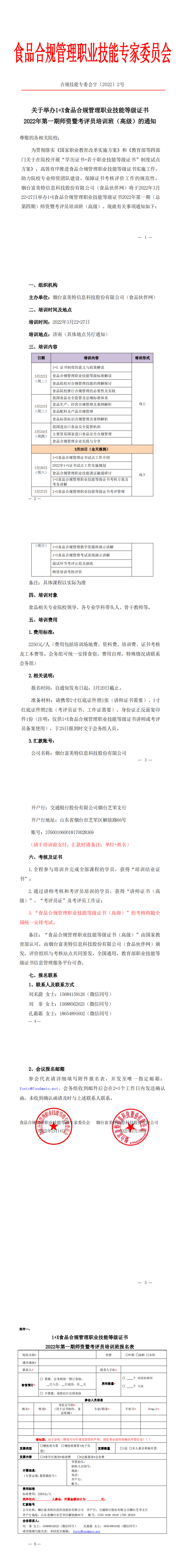 關于舉辦1+X食品合規(guī)管理職業(yè)技能等級證書2022年第一期師資暨考評員培訓(高級)的通知2.15