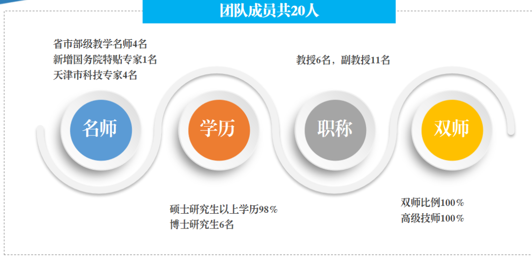 ?科技創(chuàng)新填空白。獲天津市科學技術進步一等獎,填補天津職業(yè)教育空白,培養(yǎng)國務院特殊津貼專家1人,雙師100%